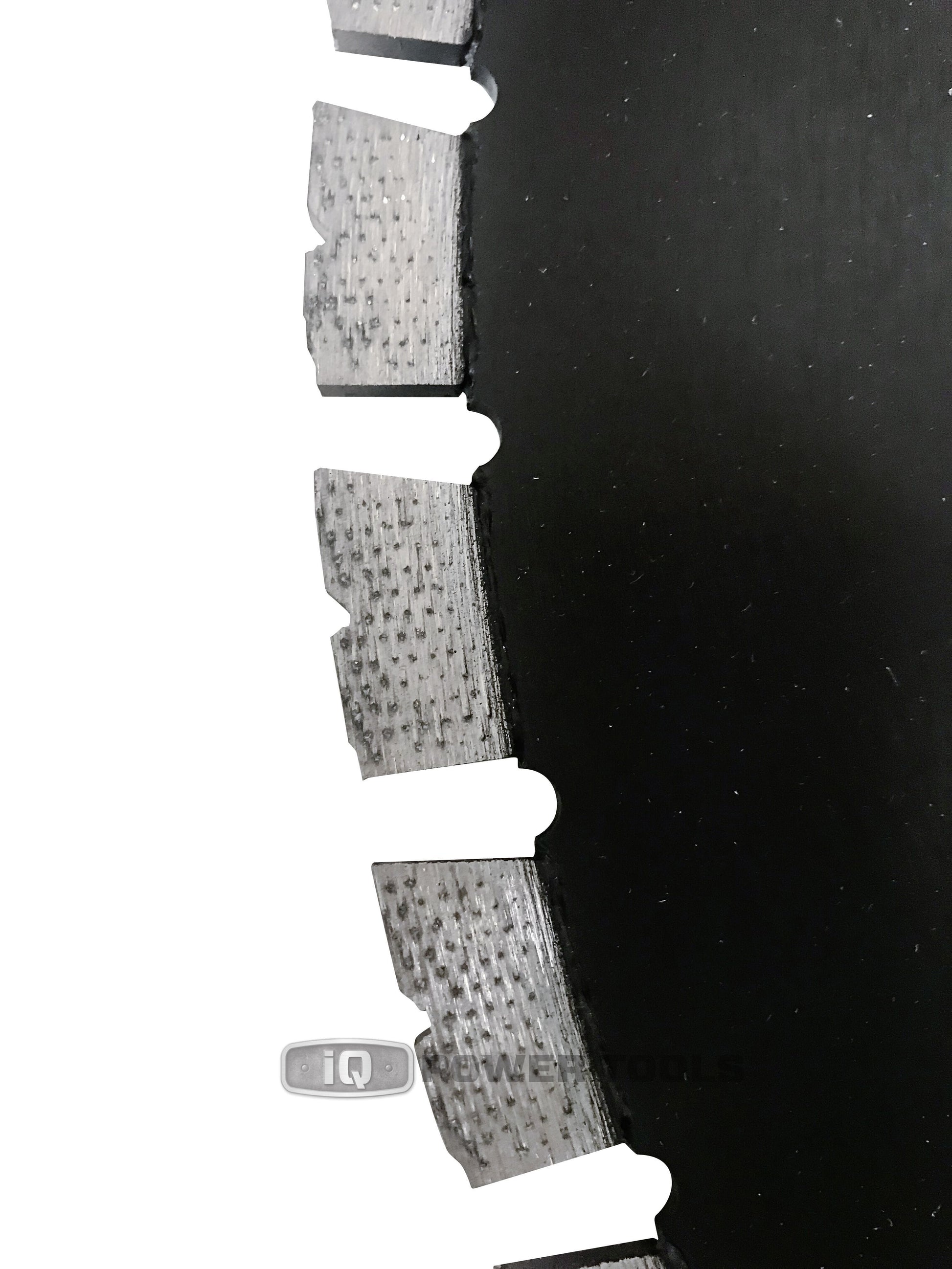 The proprietary Q-Drive™ 16.5” iQ Arrayed Diamond Blade incorporates the latest in diamond tool technology. The iQ arrayed diamonds make for faster, more consistent cutting speeds. When one row of diamonds begins to wear out, there is a 2nd row right behind it that’s ready to cut.