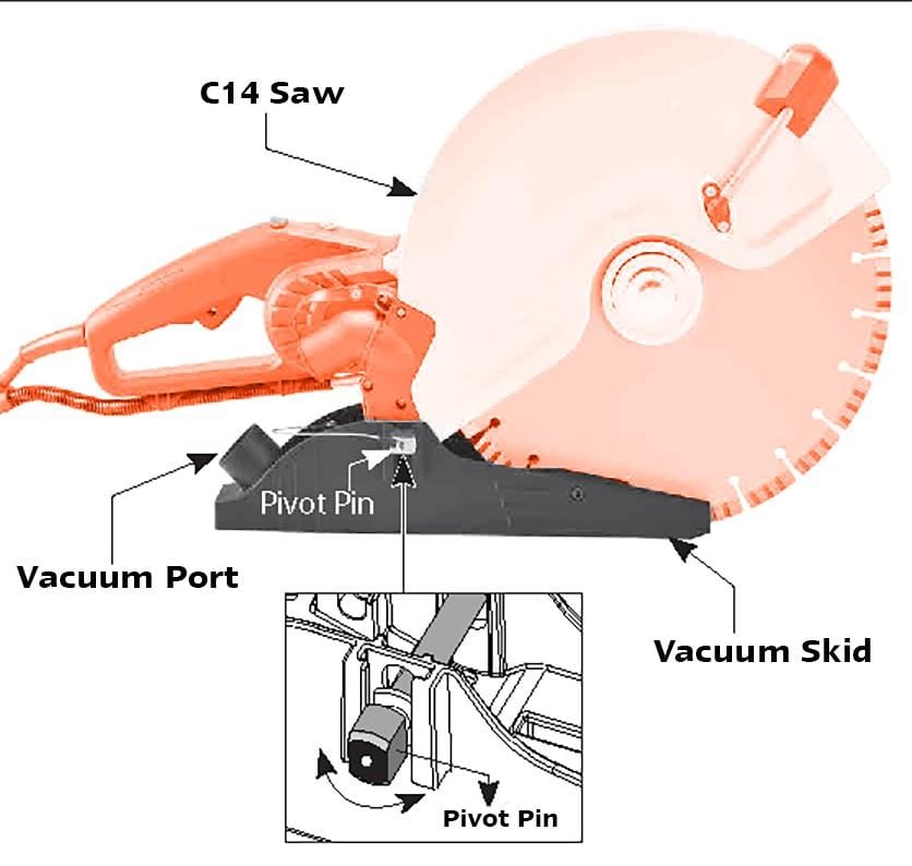 The C14 electric handsaw is a reliable electric power cutter ideal for indoor use for cutting up to 5" deep. Comes with detachable wheel kit for easy handling, dust port and water kit ready for wet or dry cutting.