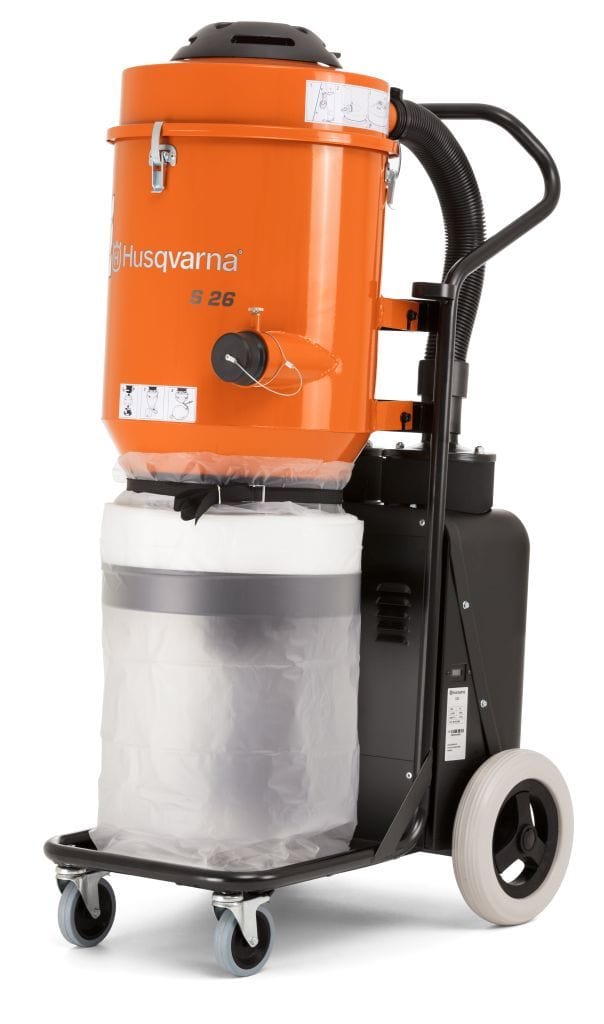 S26 is a powerful single-phase HEPA dust extractor to match the grinding machines Husqvarna PG 280, PG 450 and early entry saw Soff-Cut 150. It also matches small scarifiers and shot blasters as well as handheld power tools. This professional dust extractor is suitable for building, grinding, plaster and concrete dust.