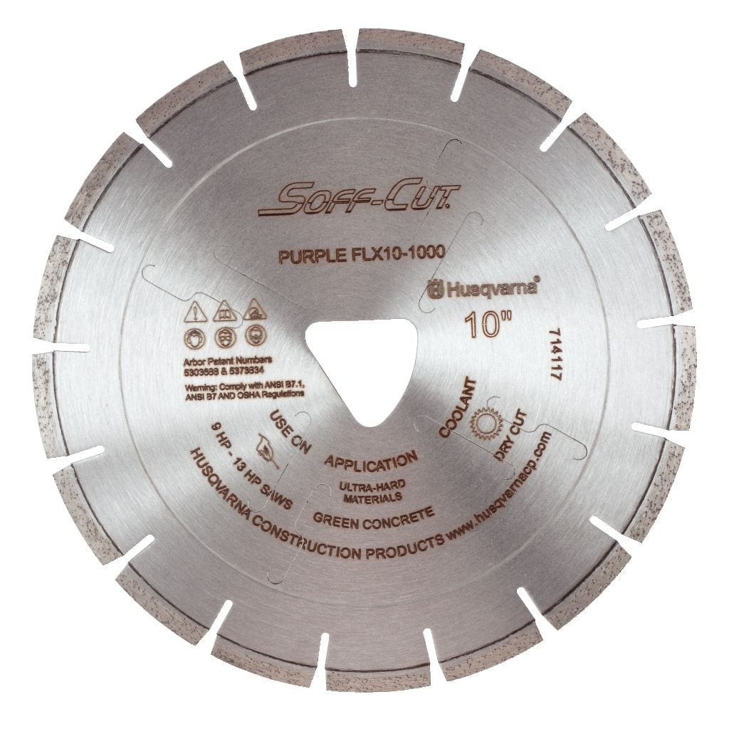 Soff Cut line of FLX Red series diamond blades gives a lower cost option for early entry saw cutting. Select from variety of different blade sizes and thickness, made for medium to hard aggregate.